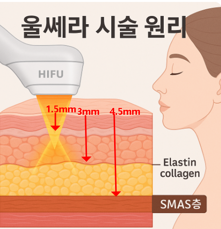 울쎄라(Ulthera)는 고강도 집속 초음파(HIFU)를 이용해 피부 속 SMAS층까지 에너지를 전달하는 리프팅 시술입니다.