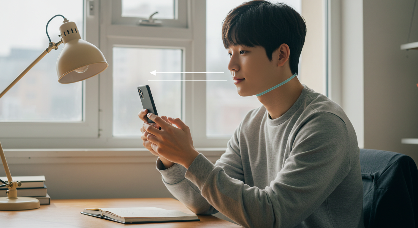 ‘턱을 앞으로 내밀지 않기’만으로도 얼굴 라인이 달라집니다.