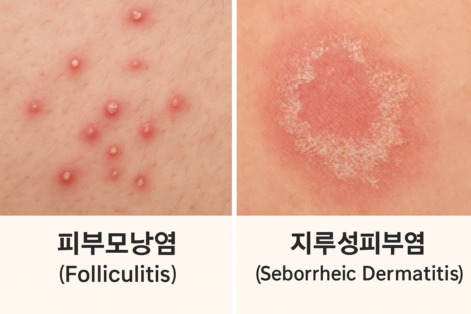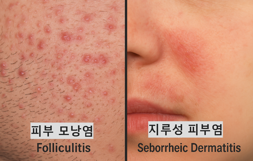 피부모낭염은 “모낭의 감염”이고, 지루성피부염은 “피지선의 염증 반응”입니다.